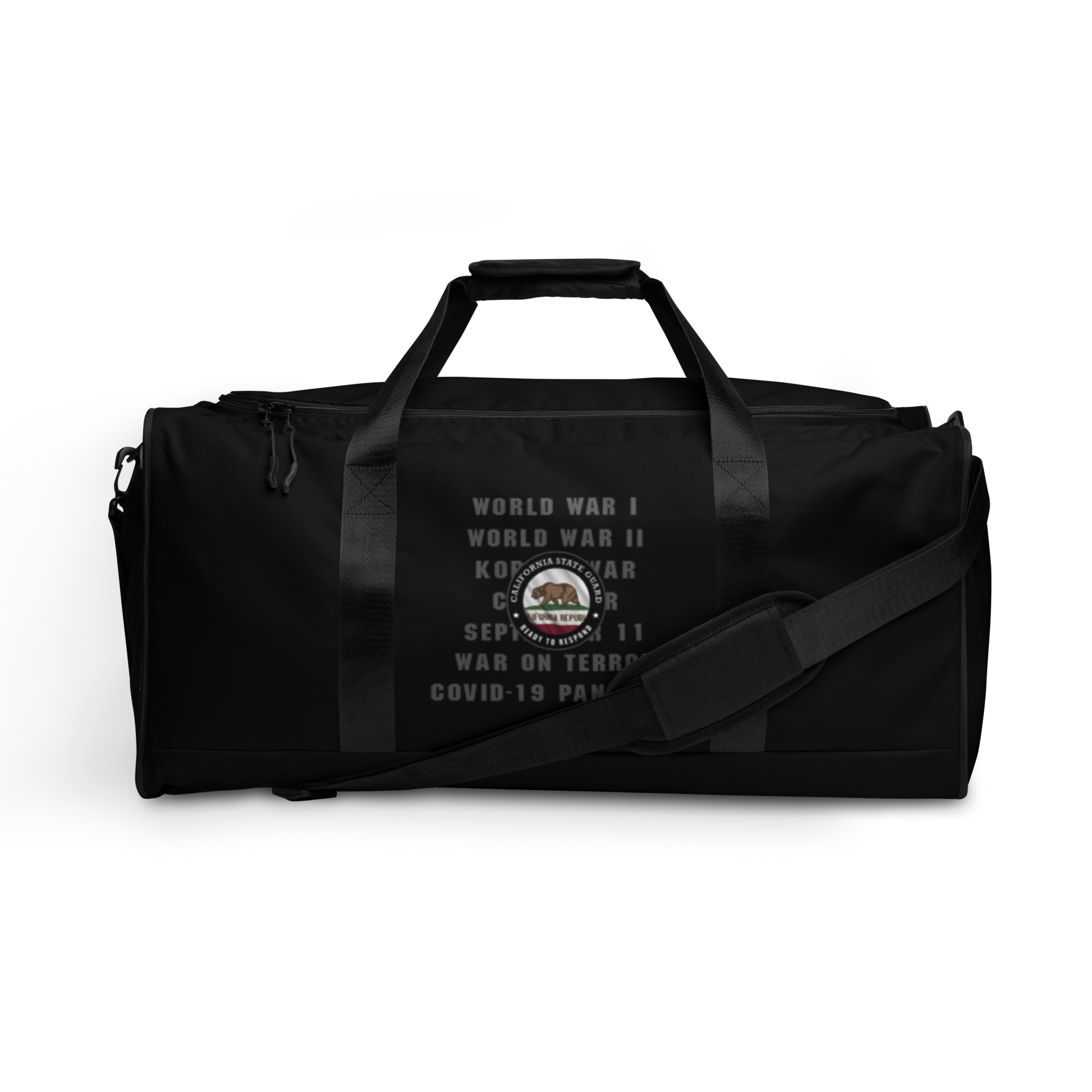 We created a custom duffle bag highlighting the wars, conflicts and turbulent times the California Stat Guard proudly served its State and Country