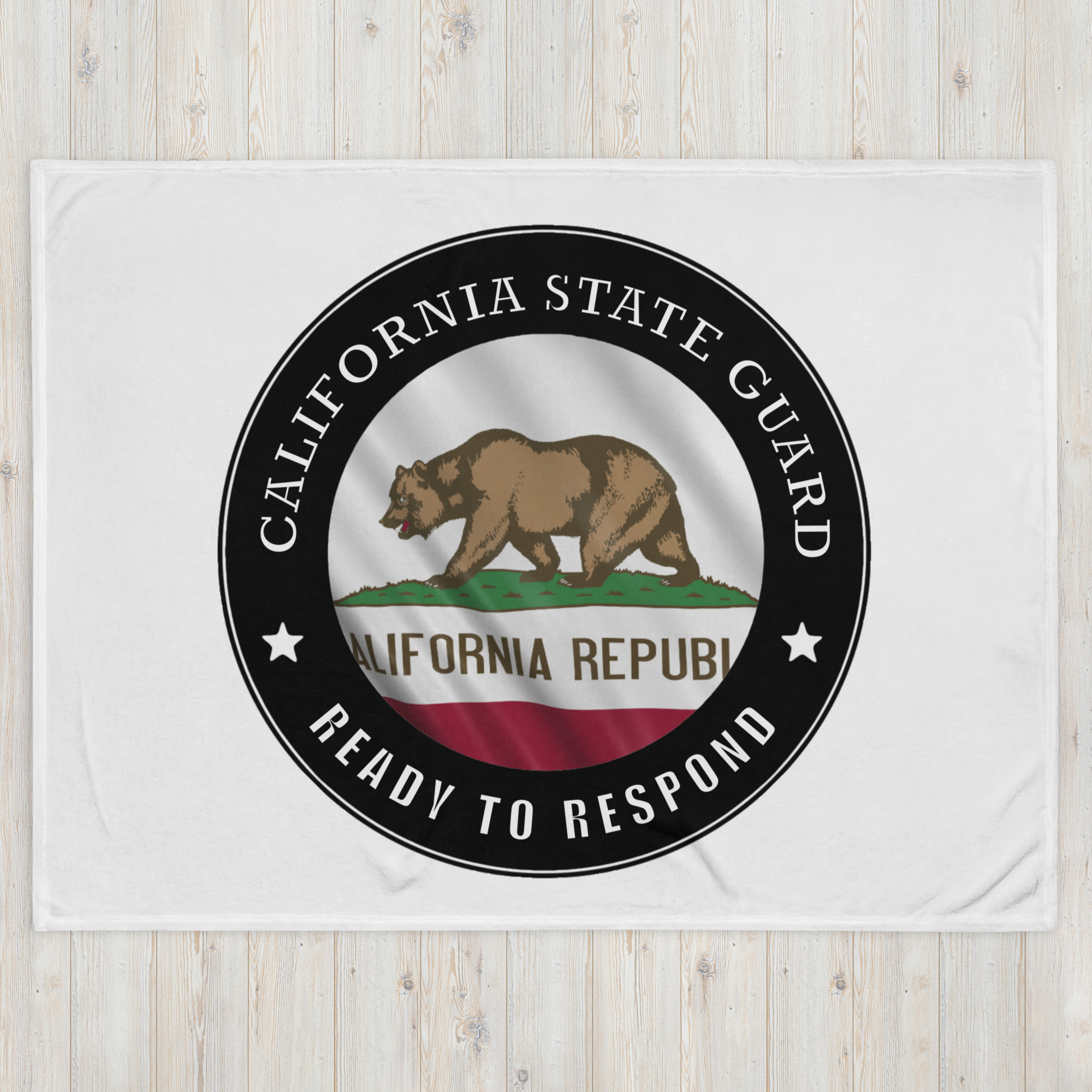 We designed a Throw Blanket with the California State Guard emblem that features the State Flag & Motto of the California State Guard.