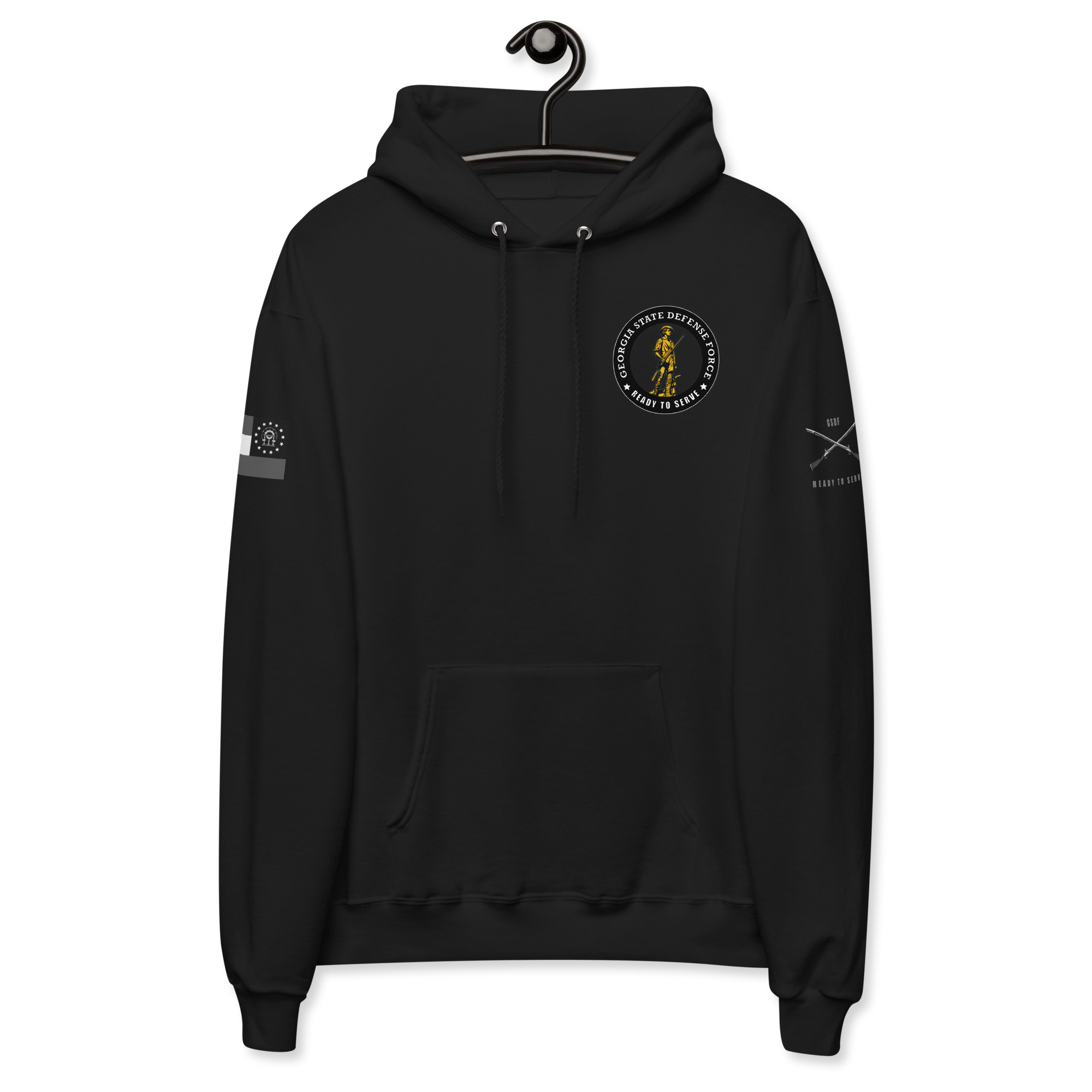 We designed a new custom hoodie for The Georgia State Defense Force. This hoodie features The American Minuteman Emblem on the Front, Georgia State Flag on The Right Sleeve & Brown Bess Musket on The Left Sleeve.