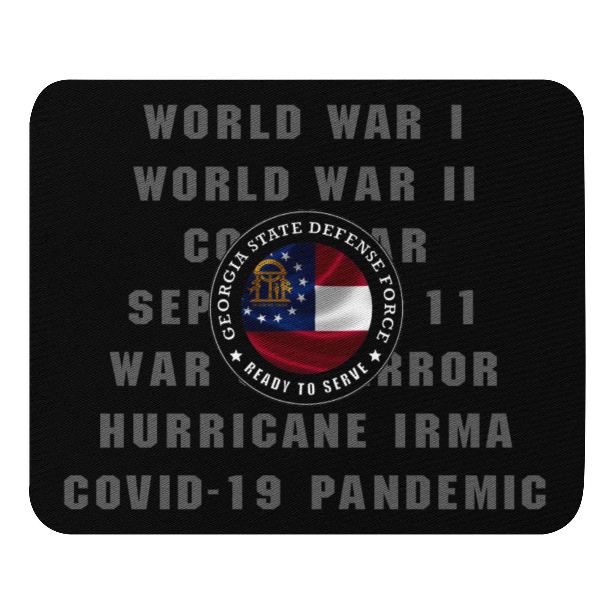 We created a custom mousepad highlighting the wars, deployments and turbulent times The Georgia State Defense Force proudly served its State and Country.