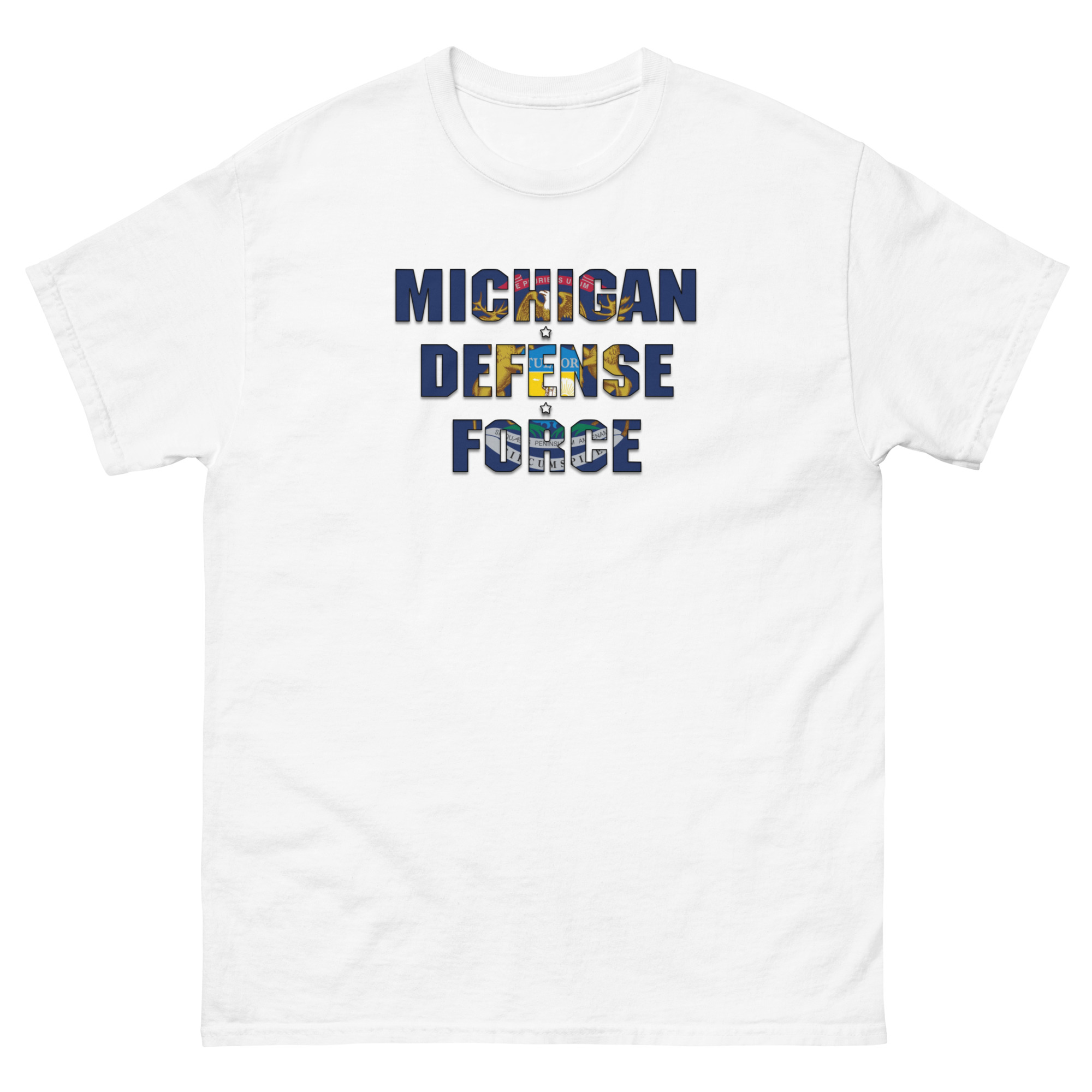 Be the first to review “Michigan Defense Force Flag T-Shirt”