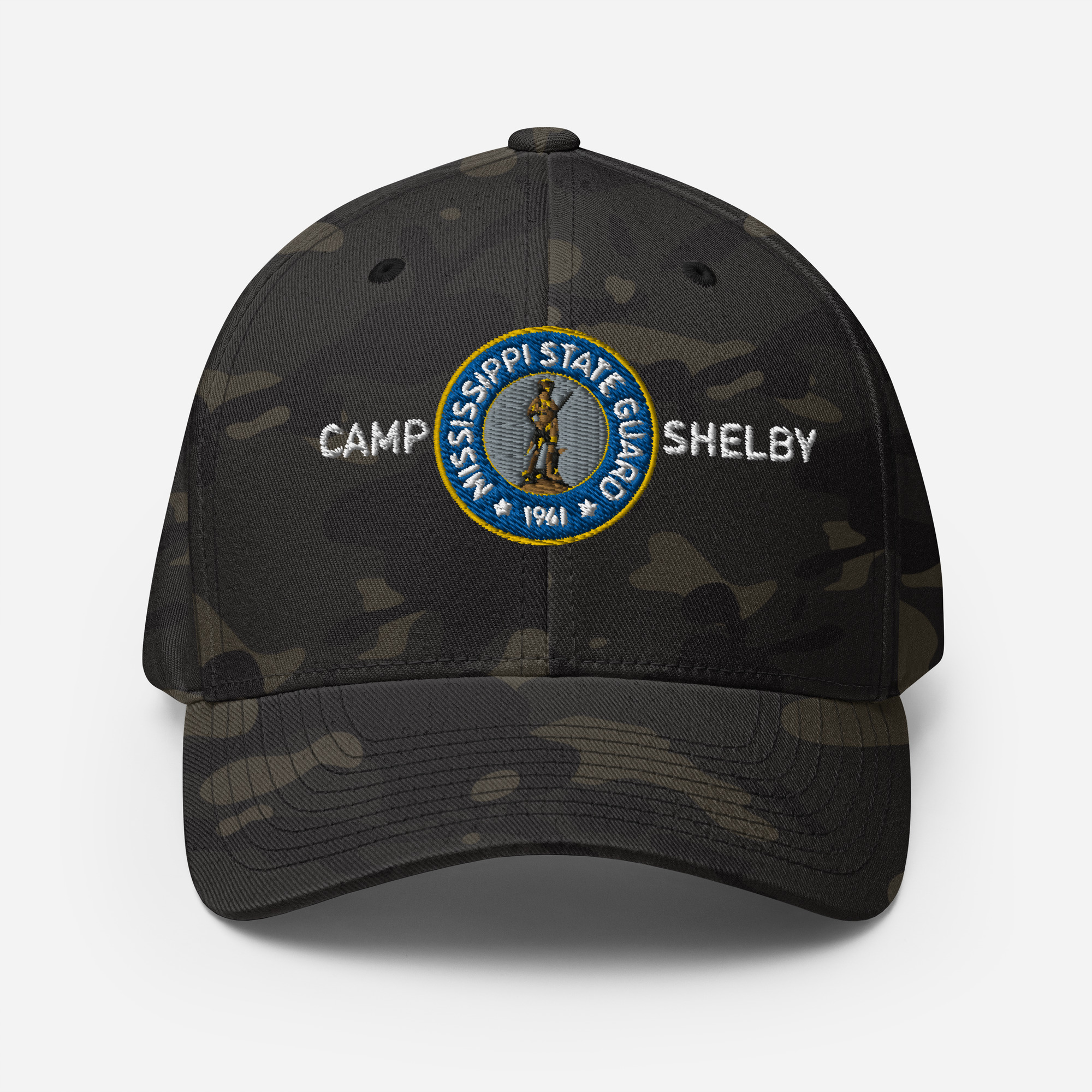 We designed a new custom cap that comes in The Multicam OCP patten. The Cap features The Blue & Gold Minuteman Emblem with Camp Shelby printed alongside. The cap is perfect for those troops who want to show the pride and love they have for their service and Camp Shelby.