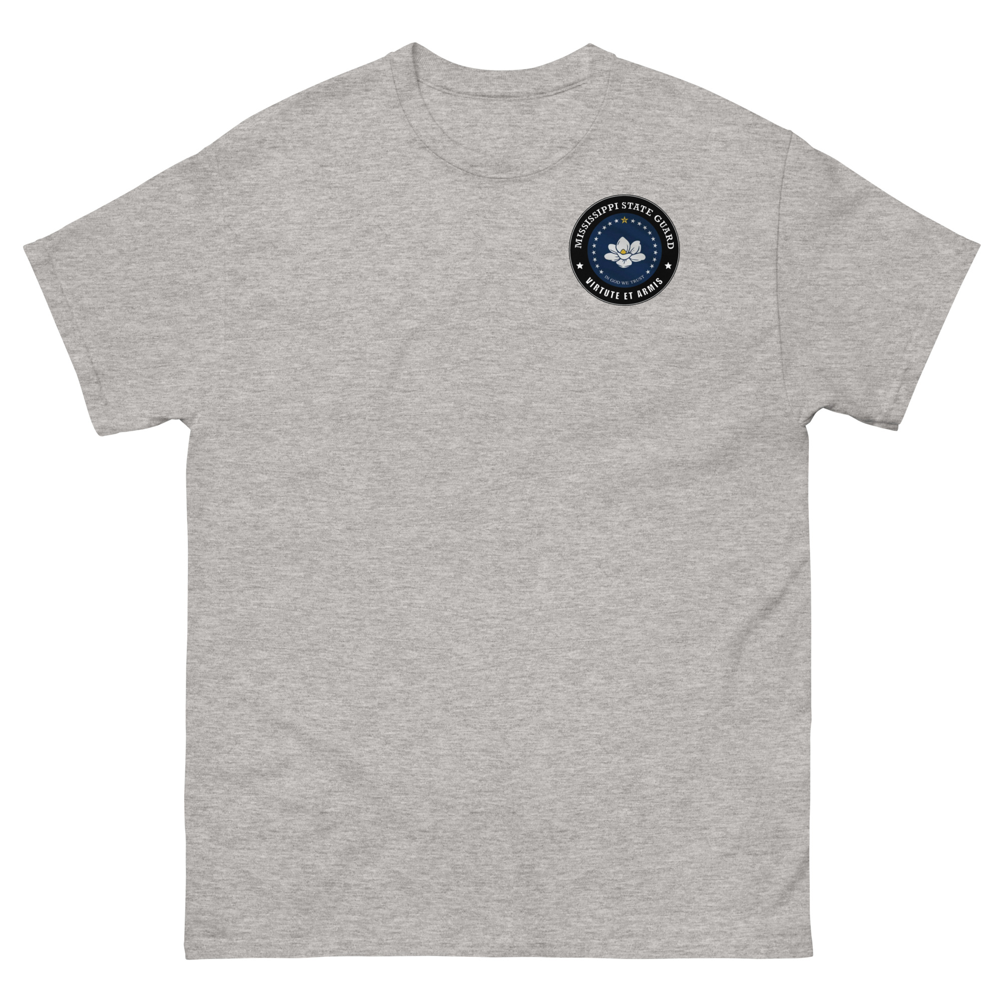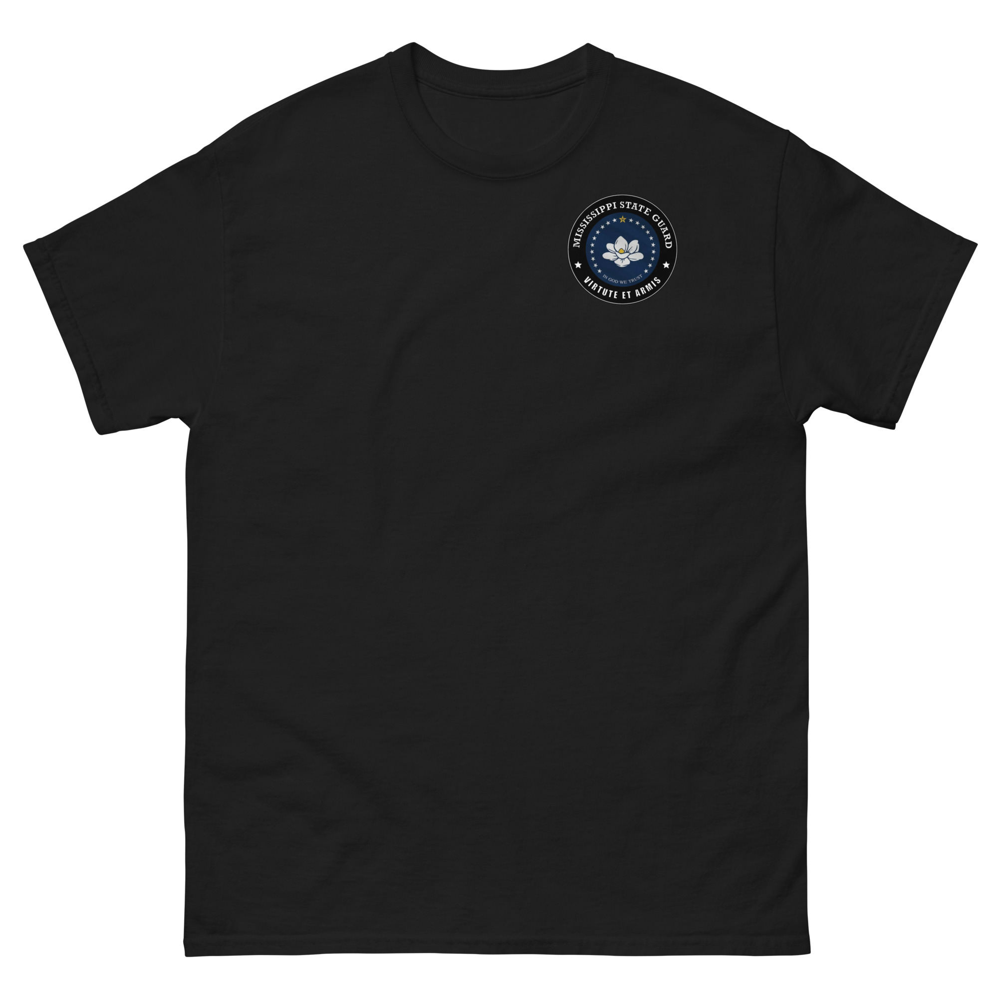 Serving in the Mississippi State Guard? We designed a T-Shirt to represent the State Flag & Motto of The State of Mississippi, which is Virtute et Armis (By Valor and Arms).