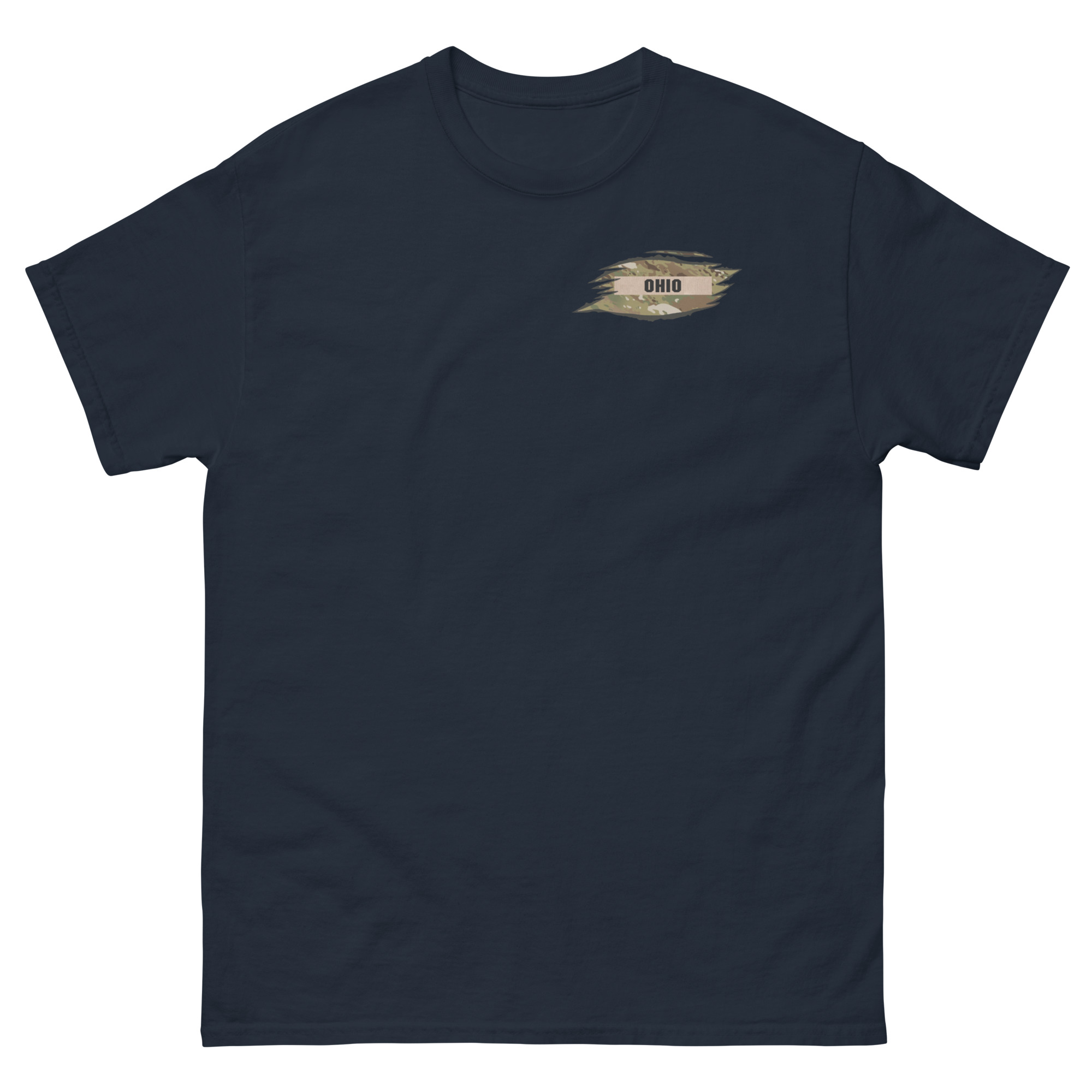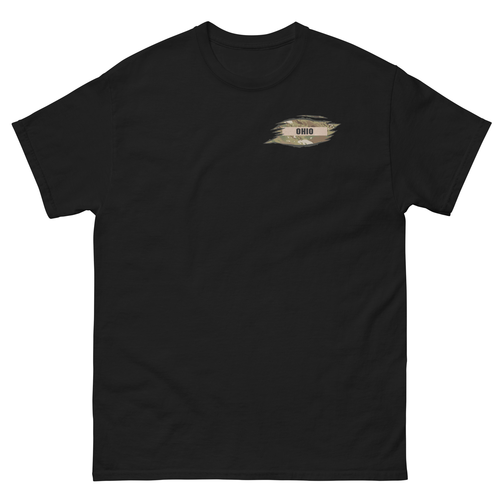 We designed a custom T-Shirt for the Ohio State Defense Force that features the Ohio State Defense Force Nametape in a ripped OCP shirt texture.