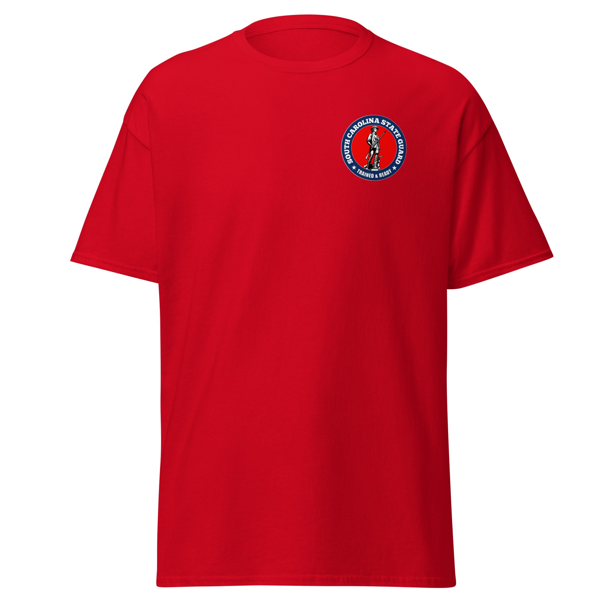 We designed a custom South Carolina State Guard T-Shirt featuring The American Minuteman highlighted in bold red.