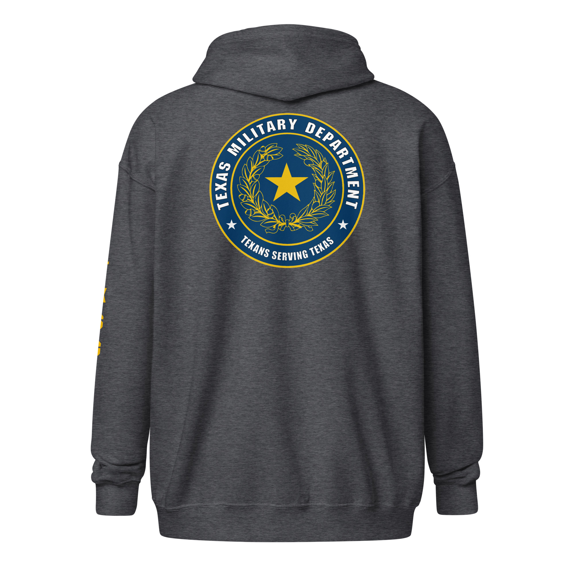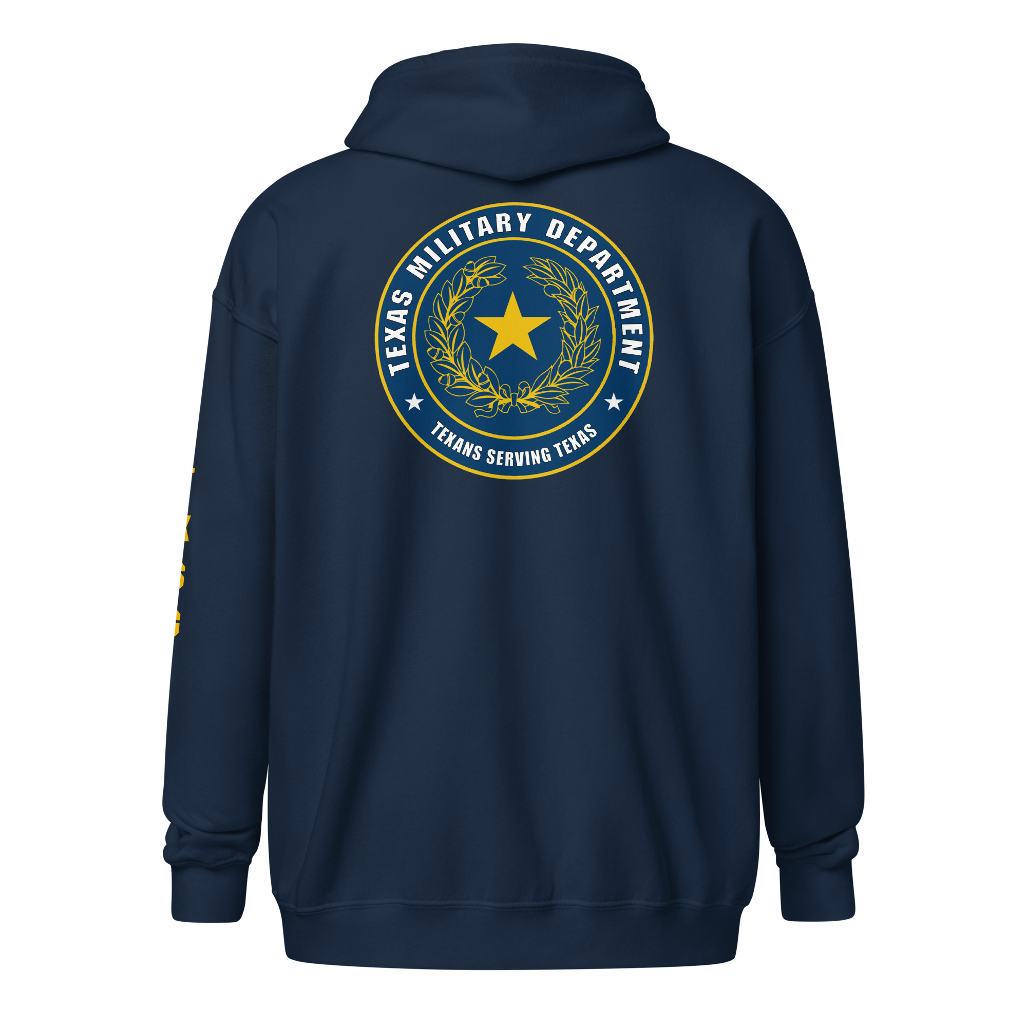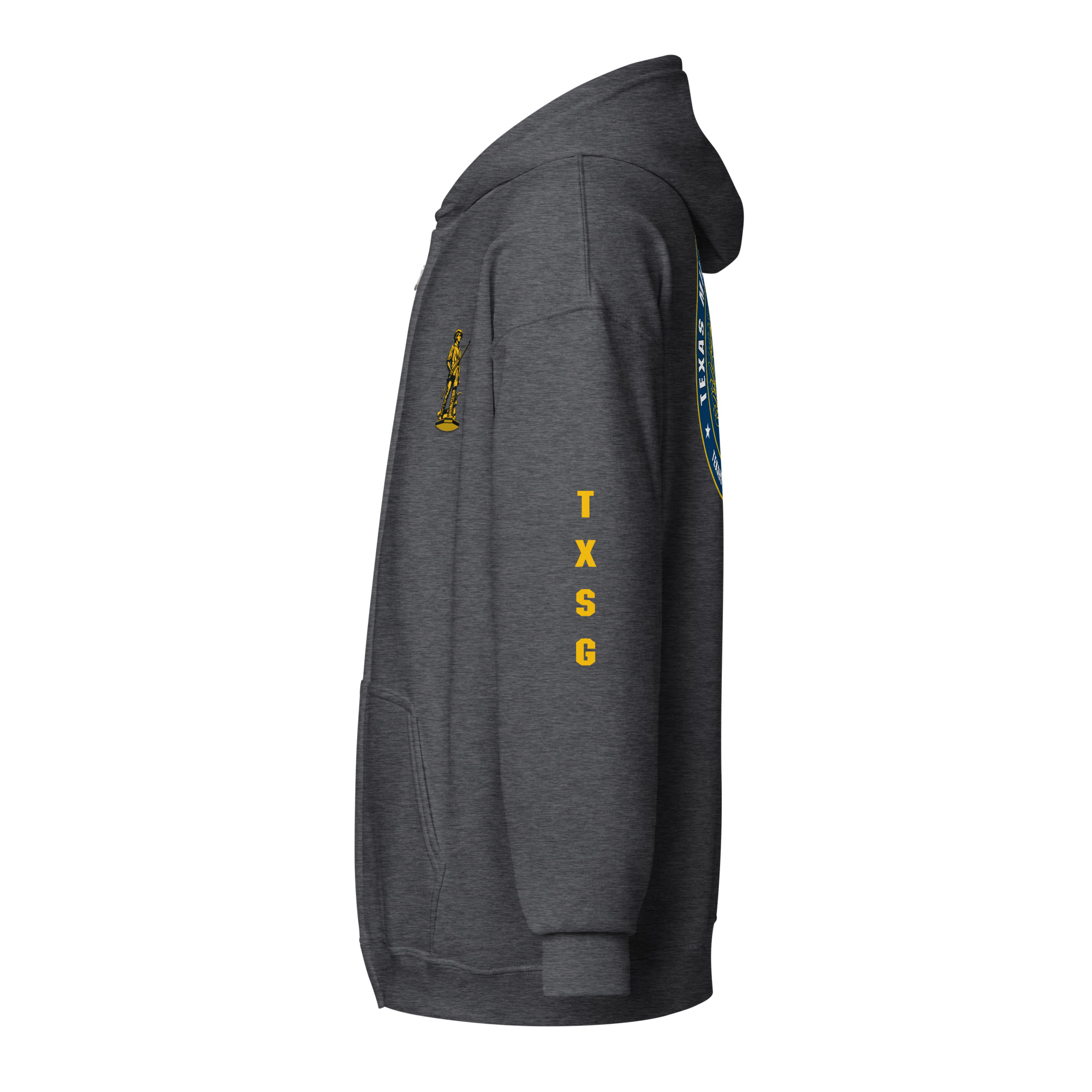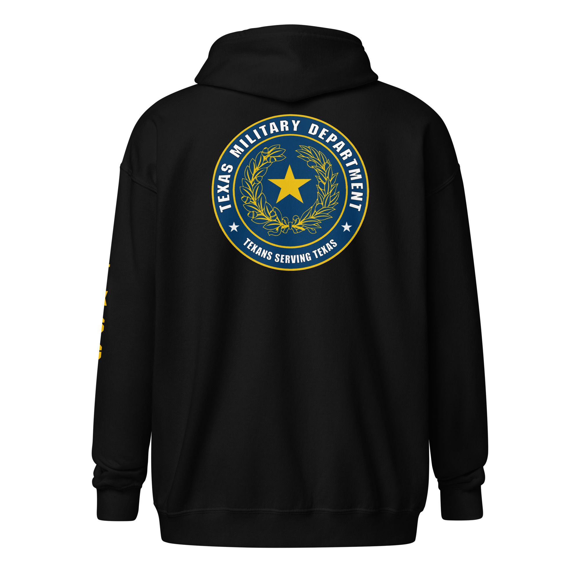 Introducing our newest hoodie, crafted to honor the Texas Military Department and the dedicated service of the Texas State Guard (TXSG). This stylish hoodie features a bold design inspired by the Texas Military Department emblem on the back, symbolizing the strength and heritage of the Lone Star State. The left sleeve prominently displays “TXSG” in a sleek vertical layout, showcasing pride in the Texas State Guard. On the front left breast, a striking gold Lone Star design embodies Texas resilience and unity. Combining comfort with a timeless look, this hoodie is perfect for representing the TXSG in any setting.