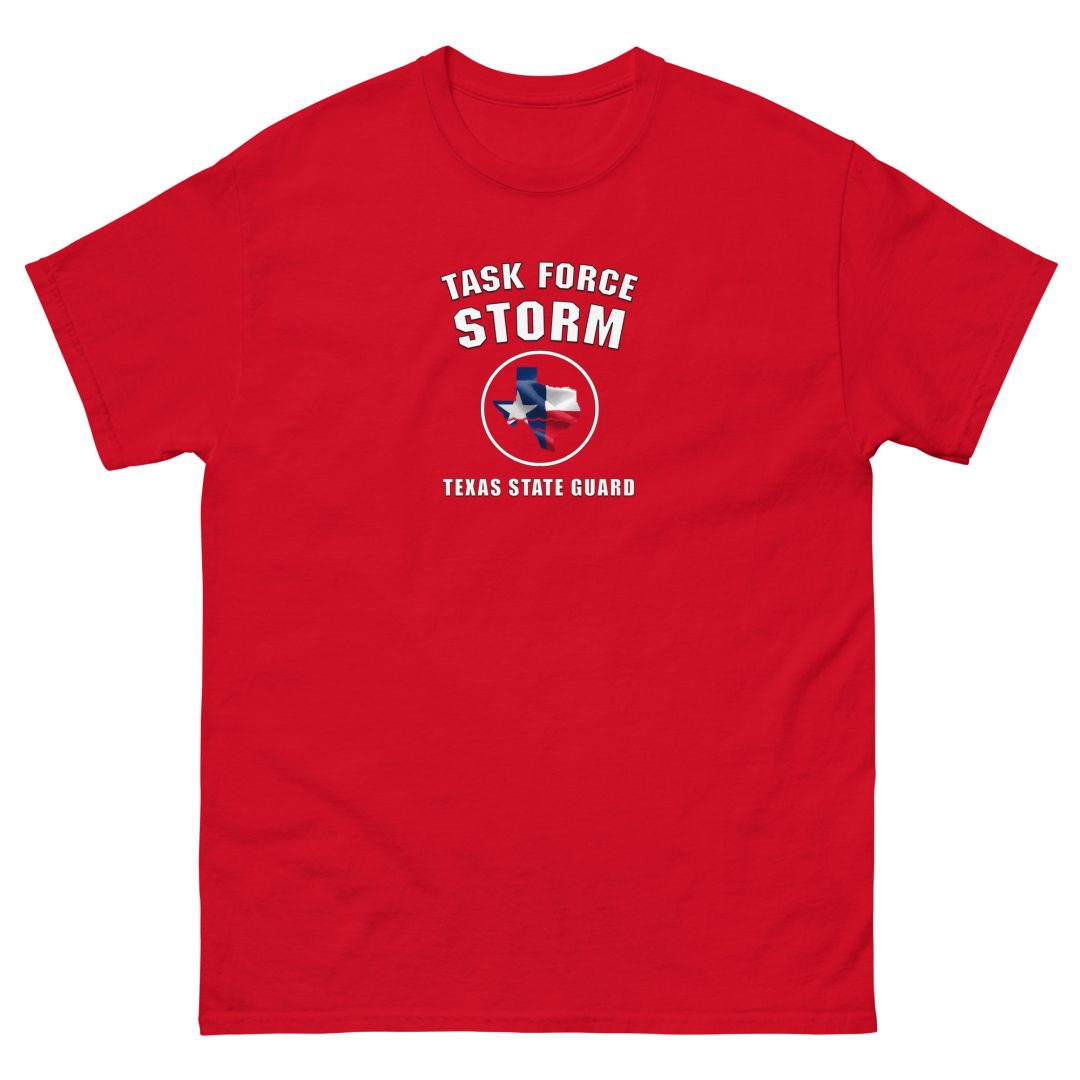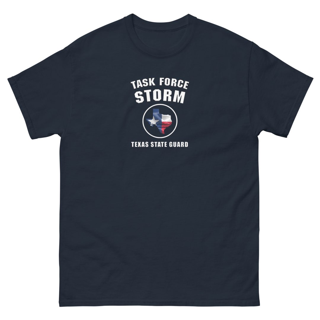 This commemorative T-shirt was created for the dedicated soldiers of the Texas State Guard who proudly served during Task Force Storm. It honors those who selflessly responded, sacrificed, and stood strong to aid their fellow Texans in the face of crisis. More than just apparel, this shirt is a symbol of pride and a lasting reminder of the vital role these Guardsmen played during a time of great need. It serves to recognize their courage, resilience, and unwavering commitment to their state and community.
