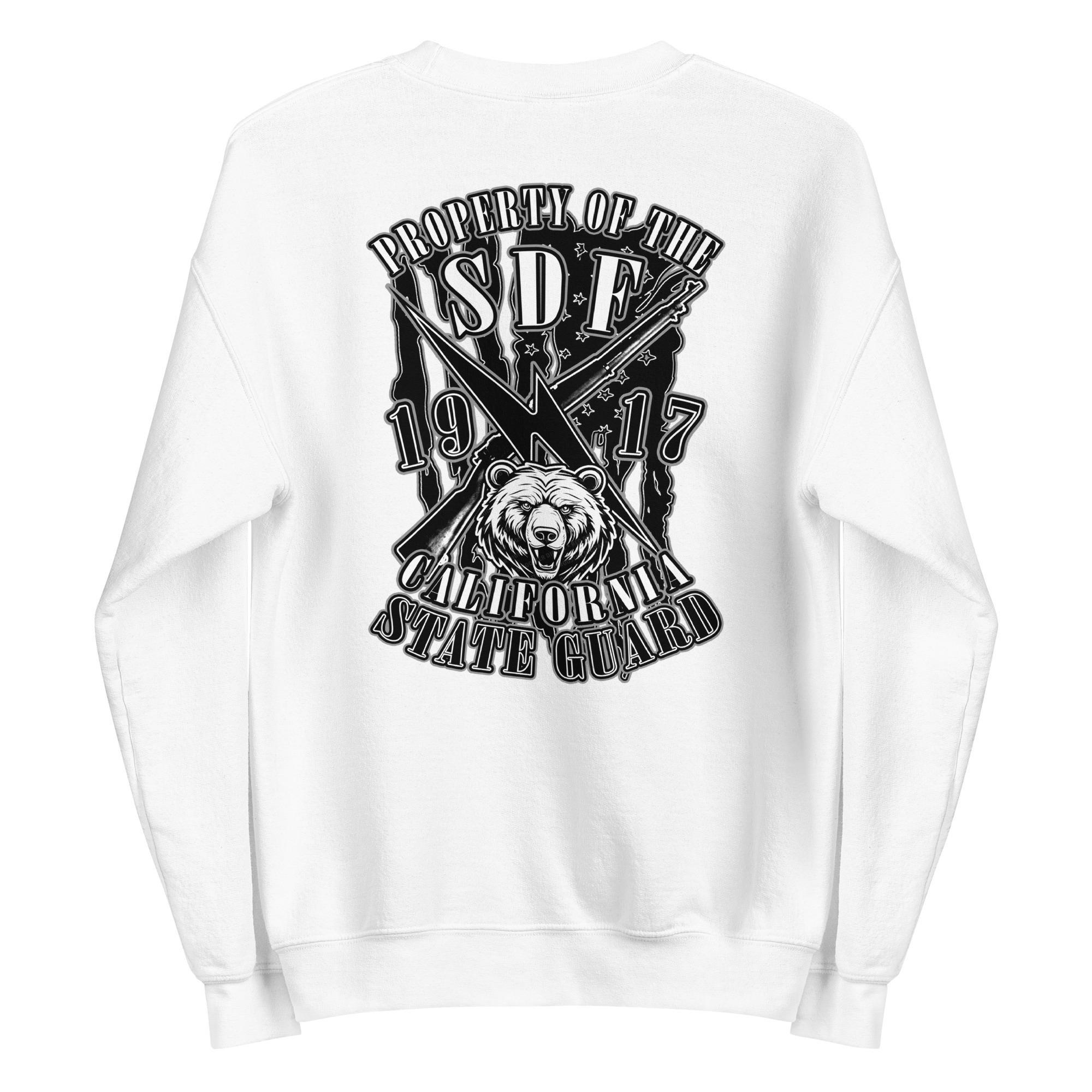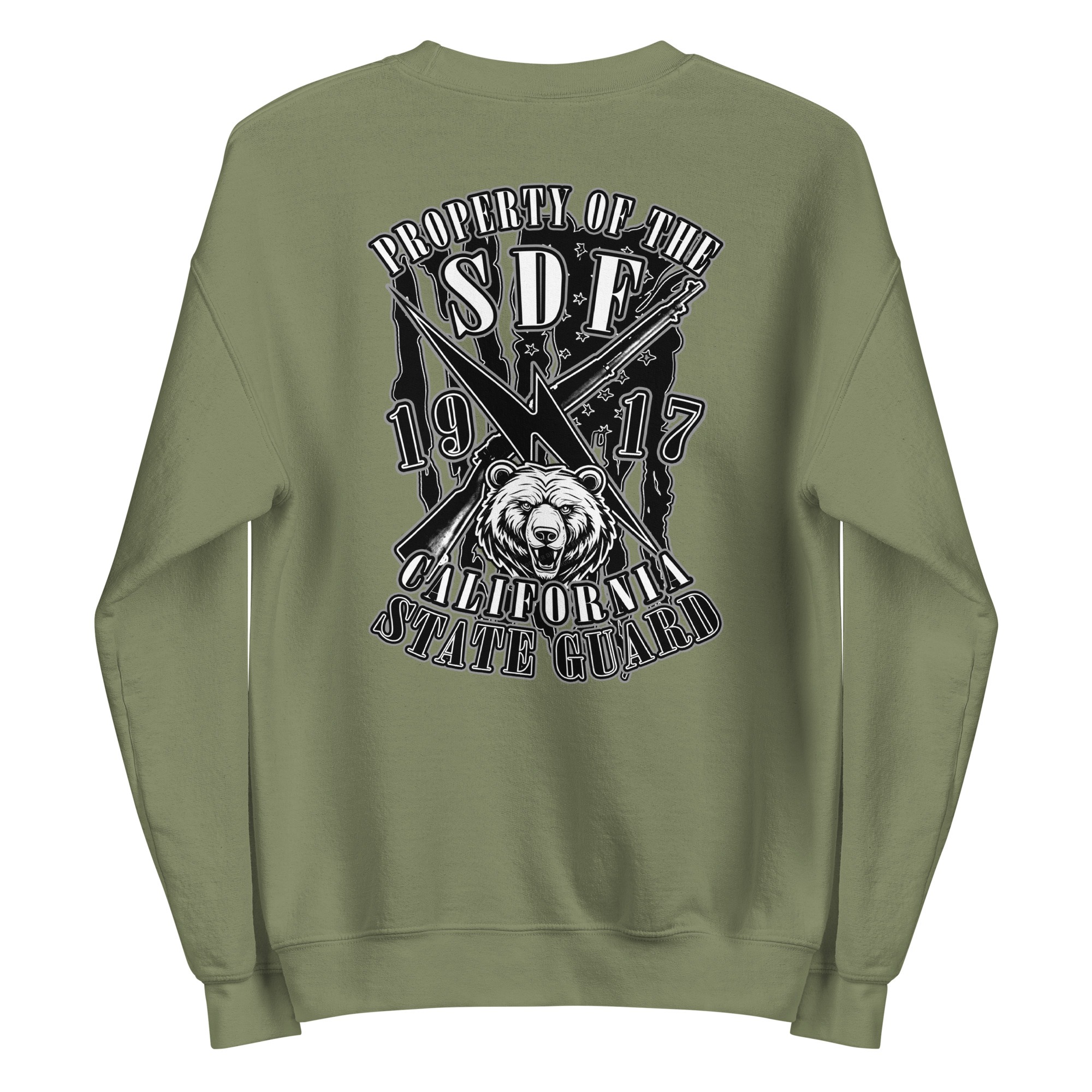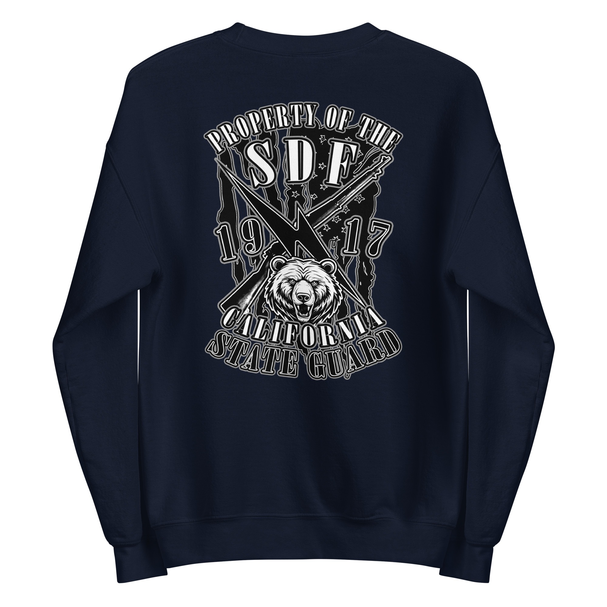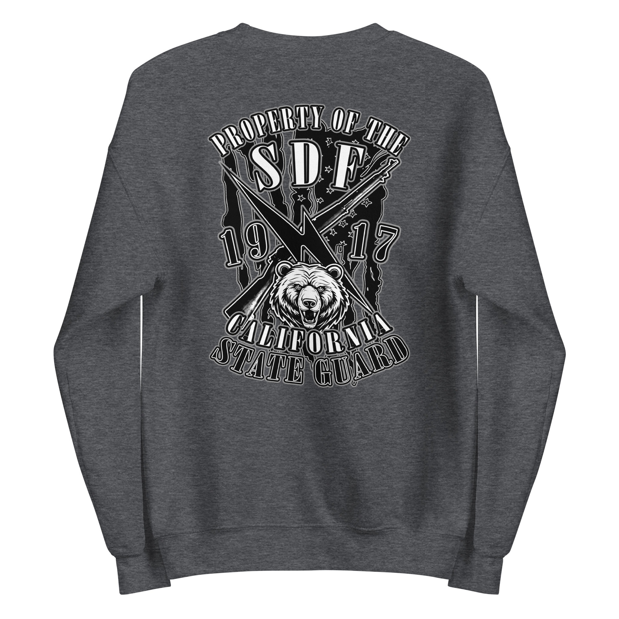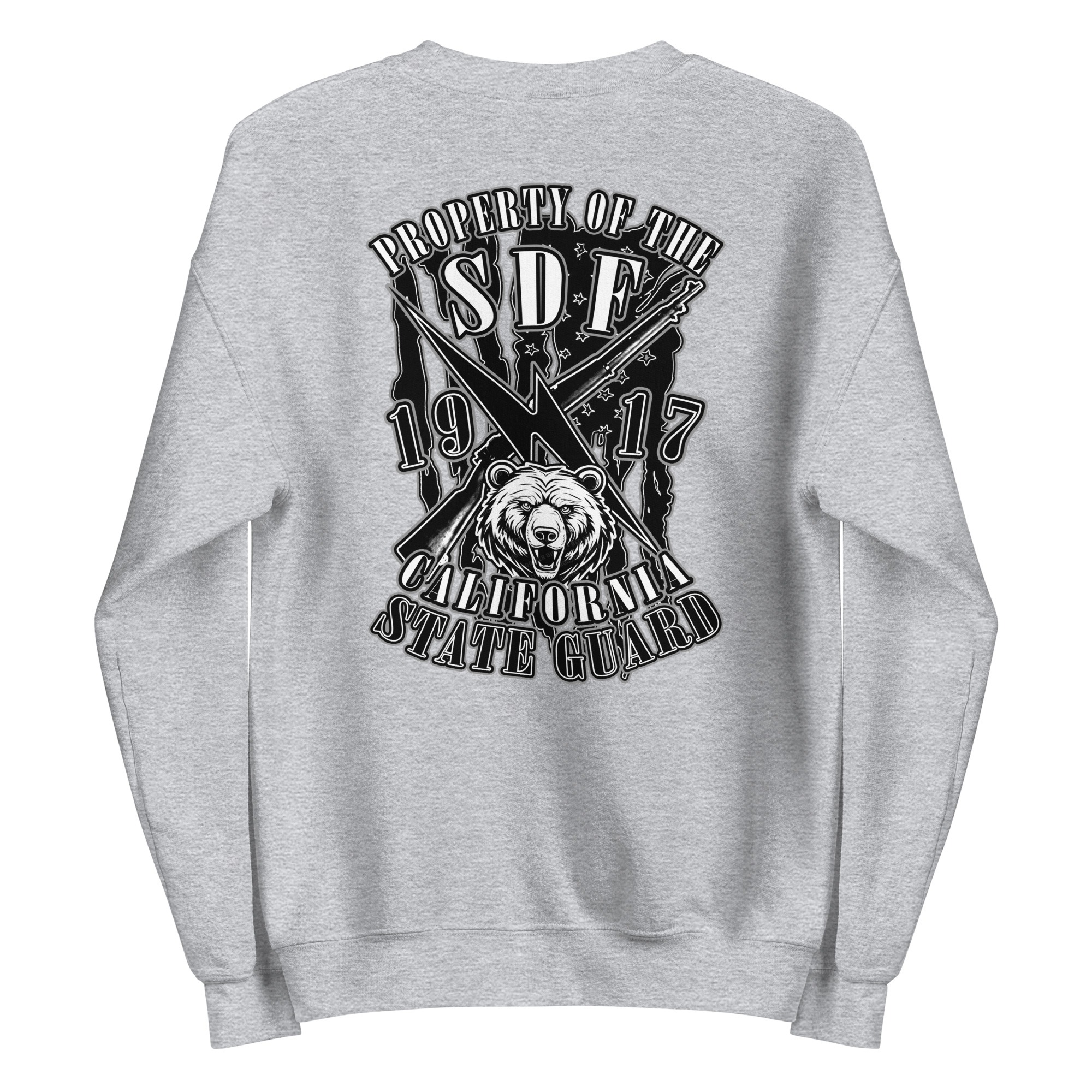 The SDF Grit – Grizzly Guard Edition builds upon the California State Guard’s proud legacy dating back to 1917. The front features crossed rifles and a lightning bolt of rapid mobilization layered over the United States flag, representing readiness and decisive action. On the back, the California Grizzly Bear commands attention, a symbol of strength, determination, and the fierce independence of the Golden State. Designed by Daniel Aguilar, this piece embodies the grit and resolve of those who serve in California’s State Defense Force.