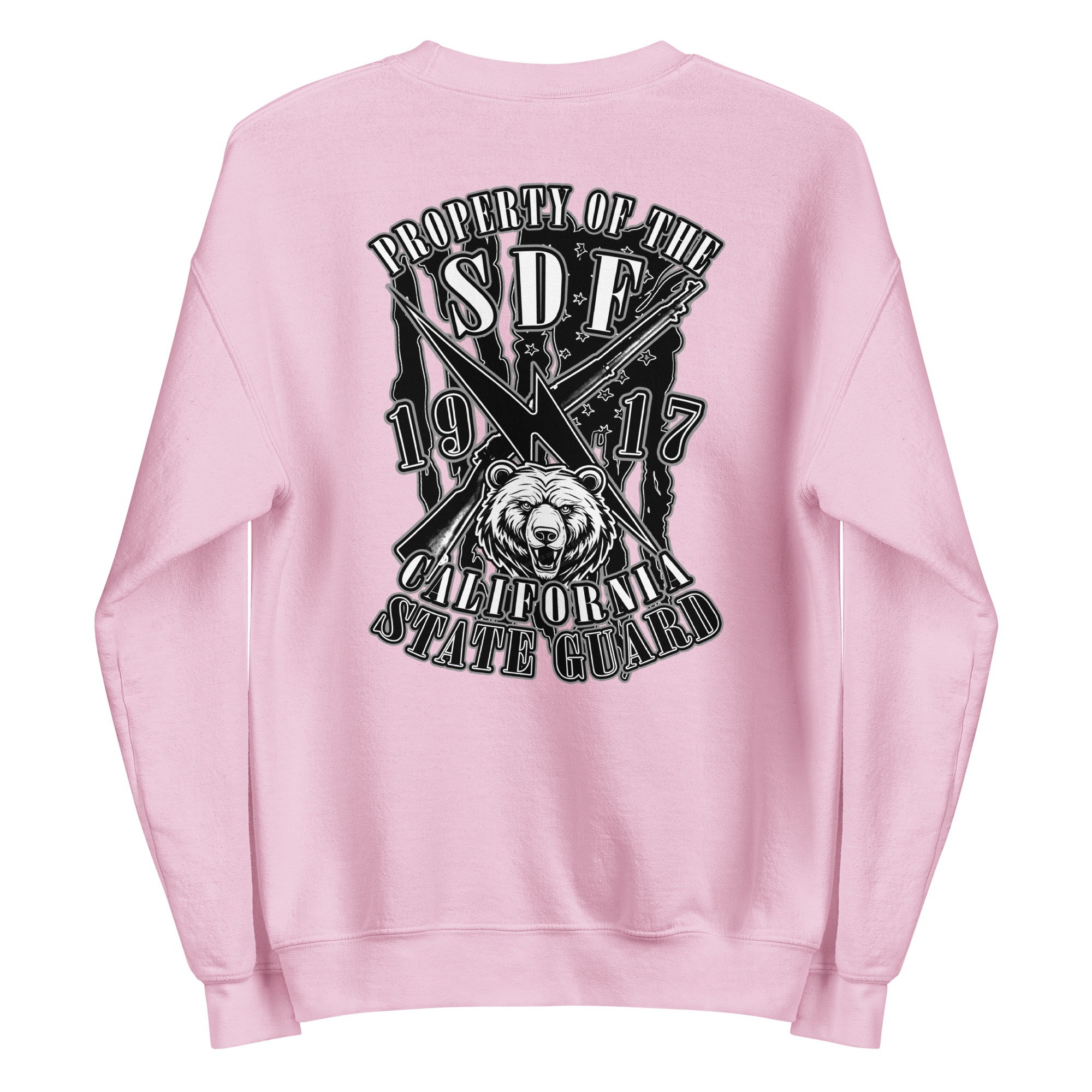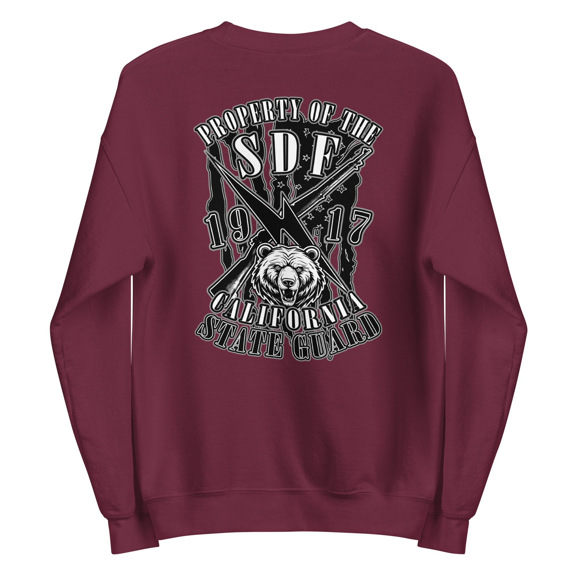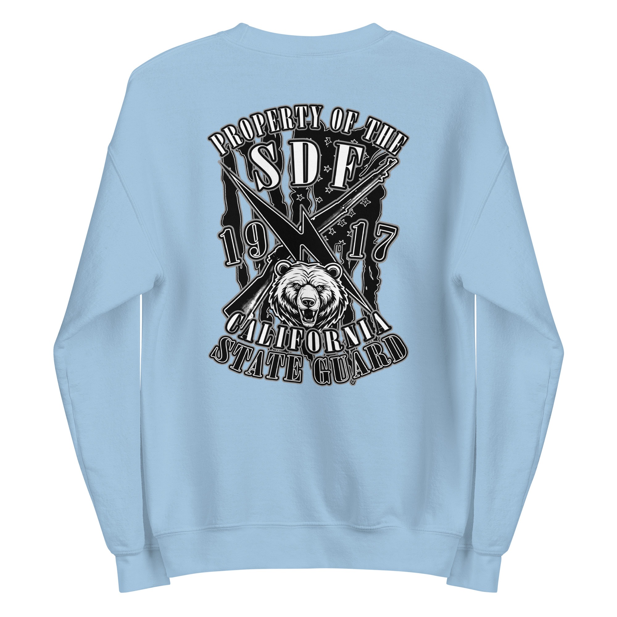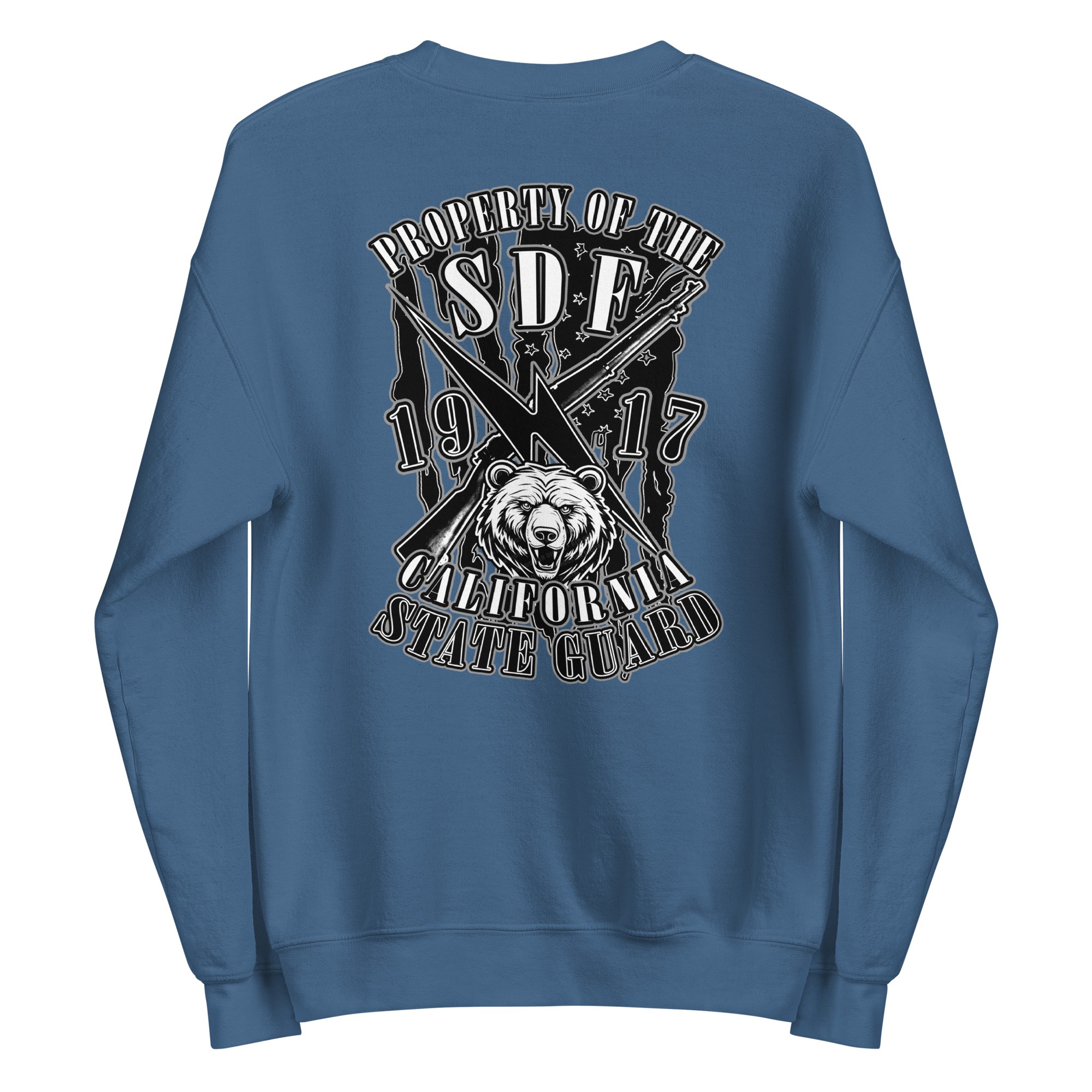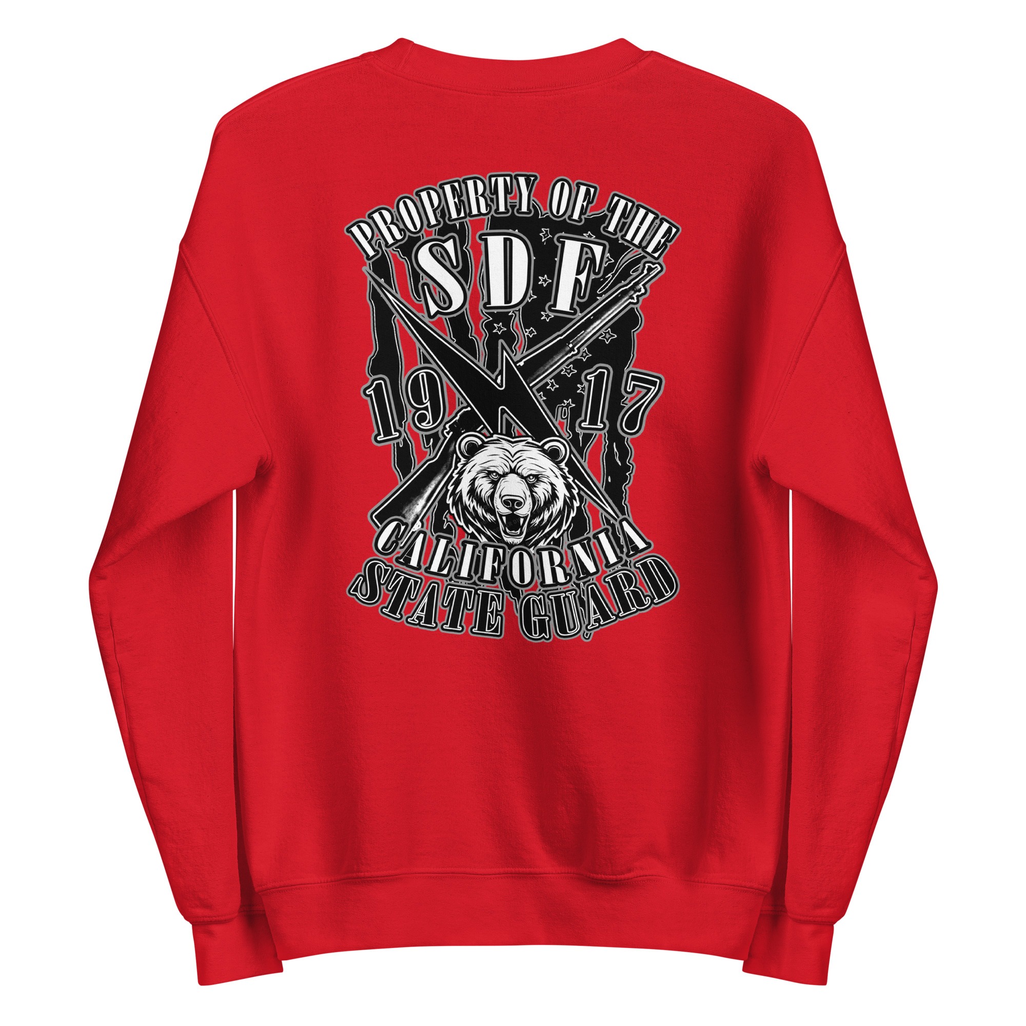 The SDF Grit – Grizzly Guard Edition builds upon the California State Guard’s proud legacy dating back to 1917. The front features crossed rifles and a lightning bolt of rapid mobilization layered over the United States flag, representing readiness and decisive action. On the back, the California Grizzly Bear commands attention, a symbol of strength, determination, and the fierce independence of the Golden State. Designed by Daniel Aguilar, this piece embodies the grit and resolve of those who serve in California’s State Defense Force.